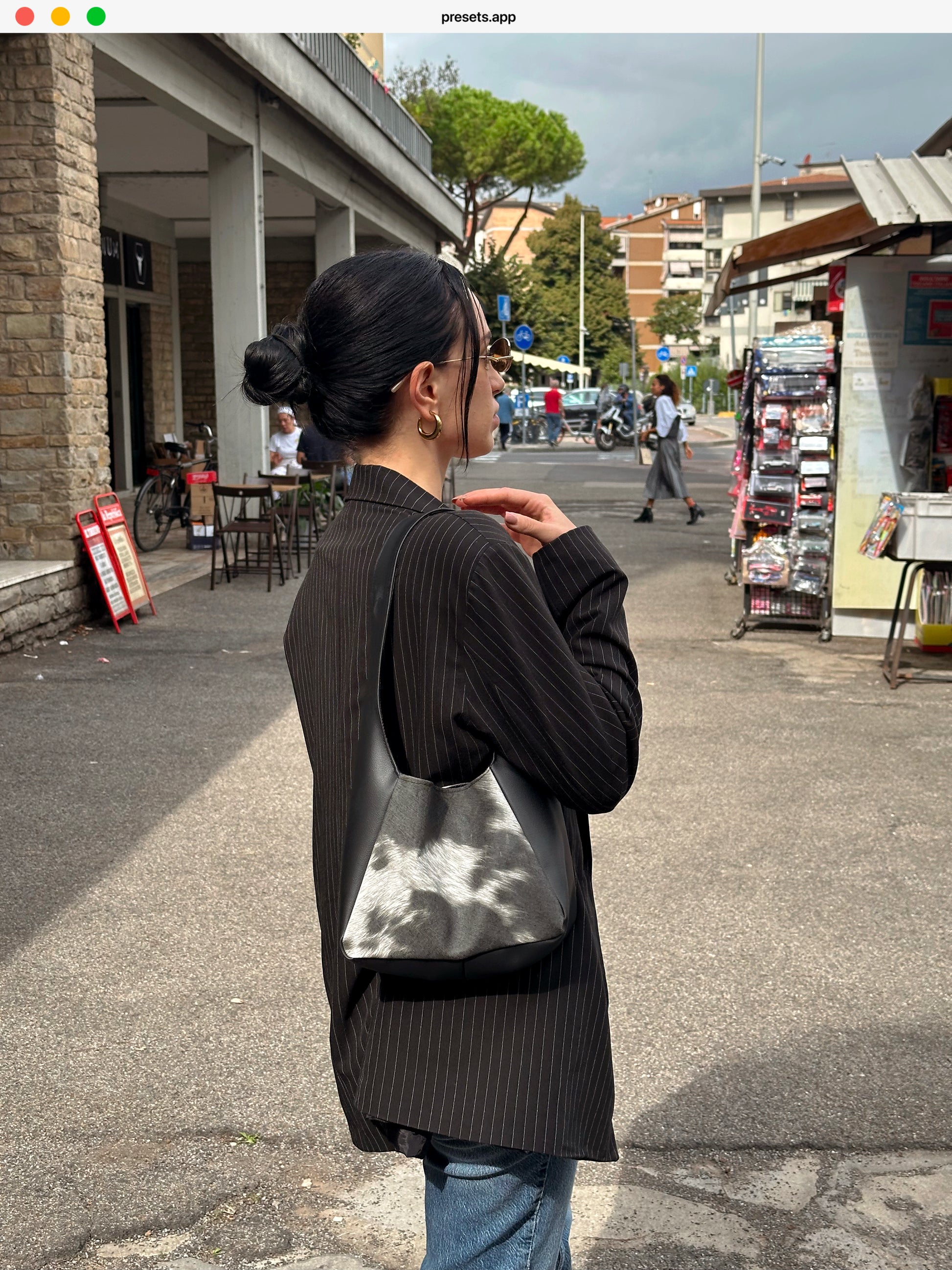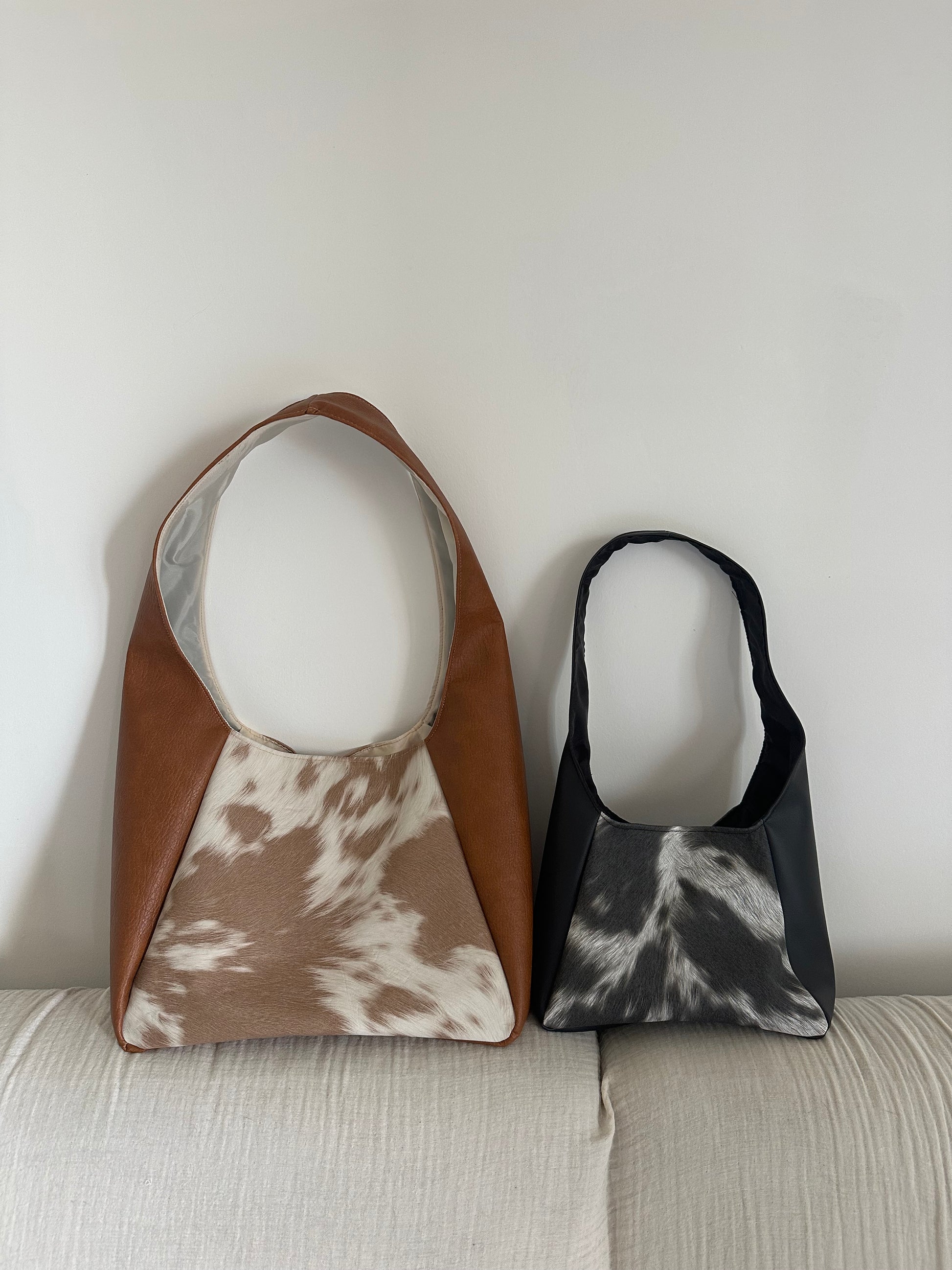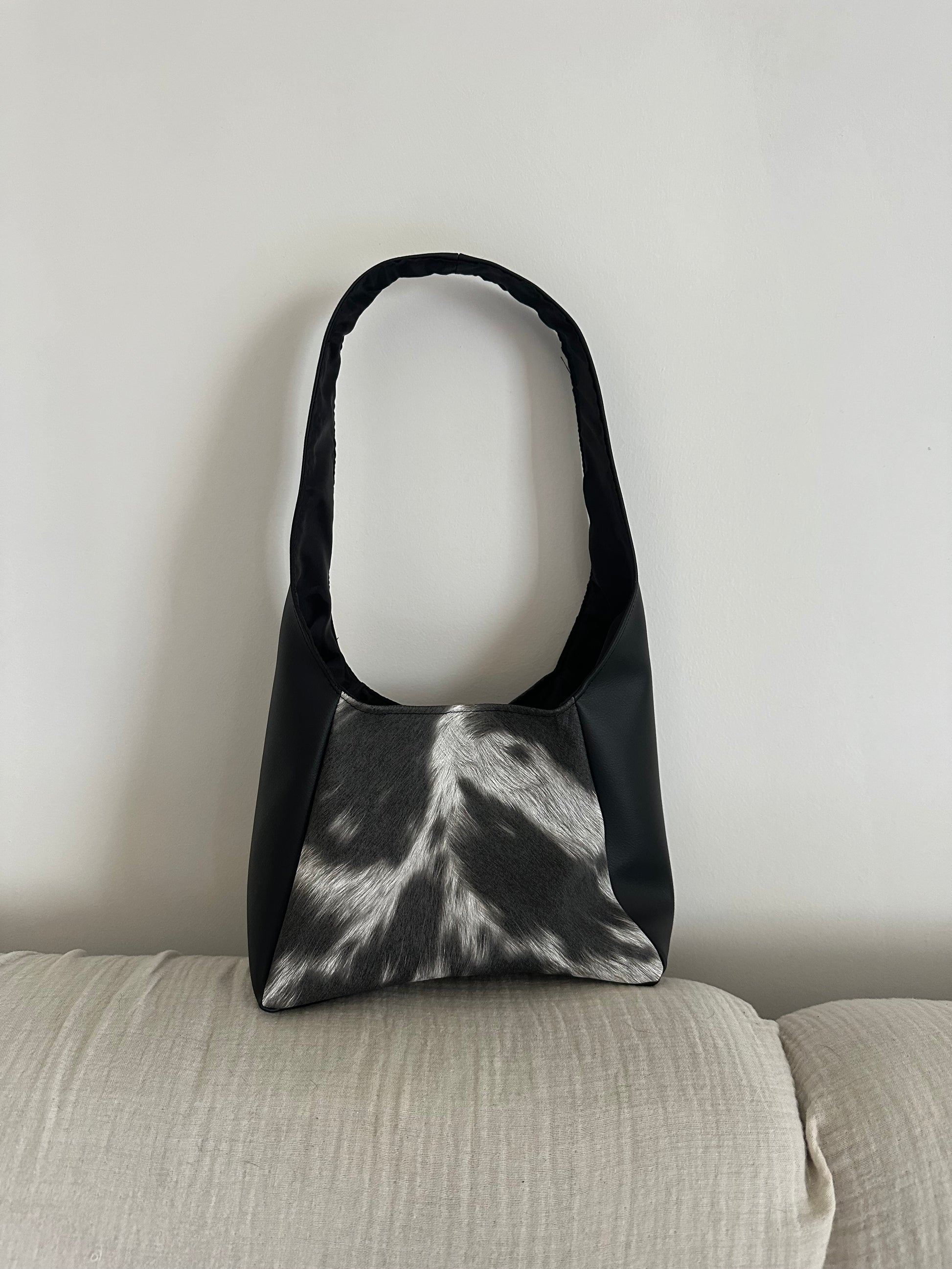 Tessuto esterno: similpelle martellata nera e similpelle stampa cavallino muccato.