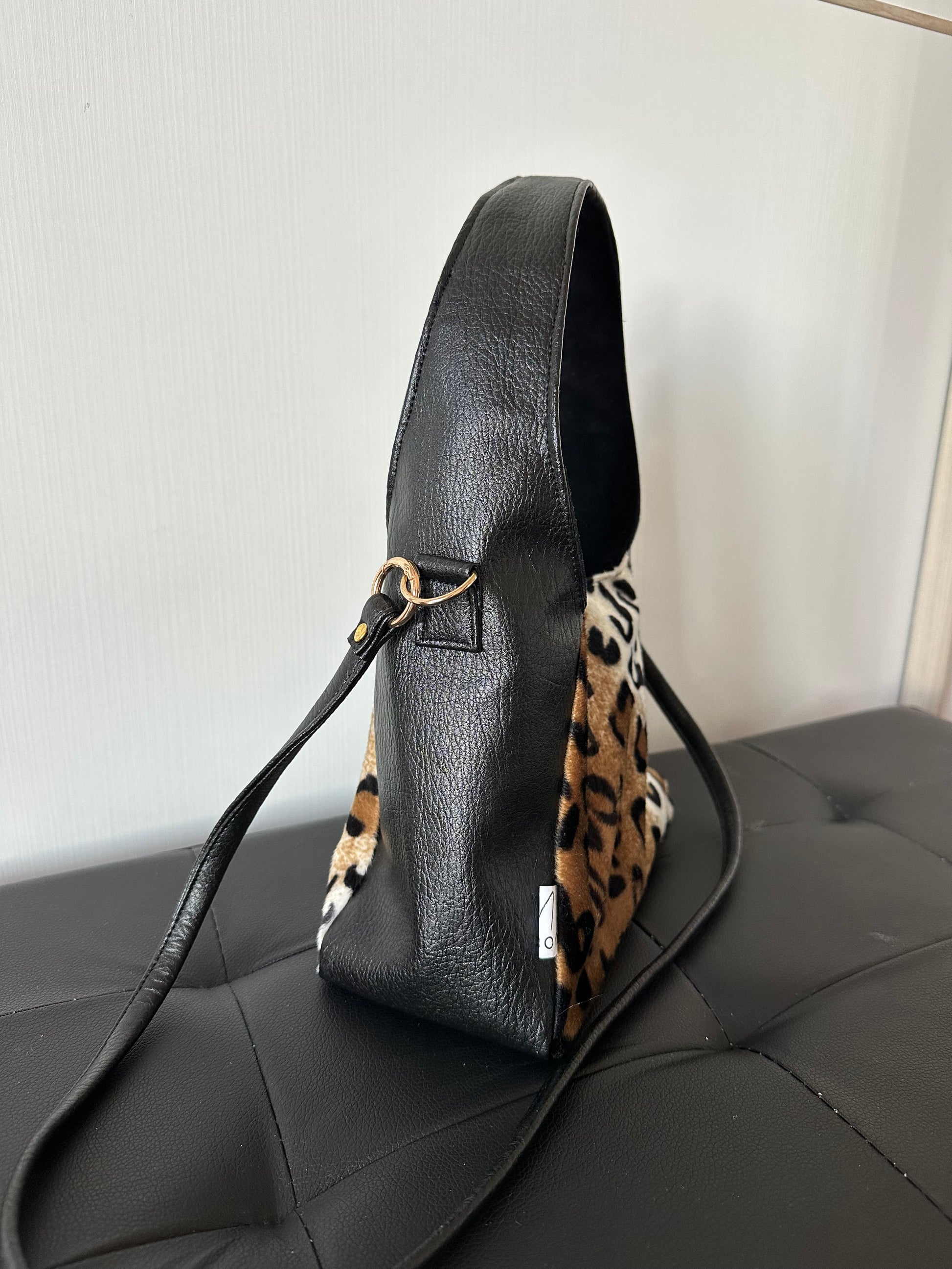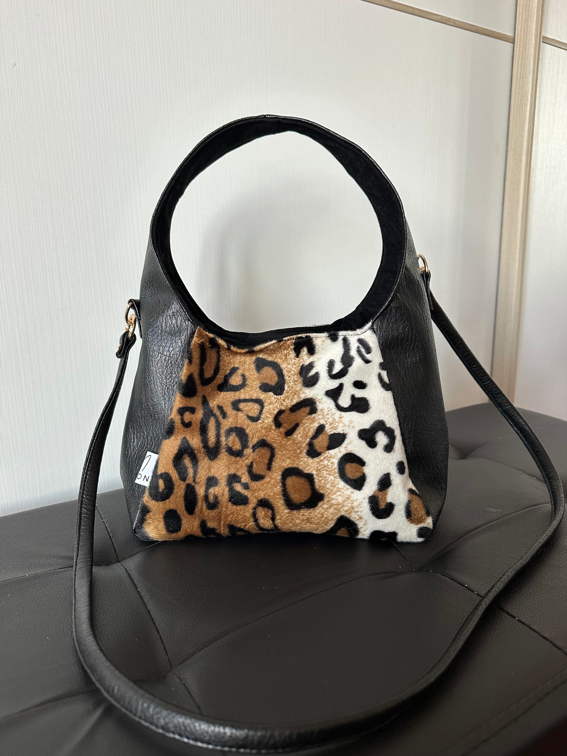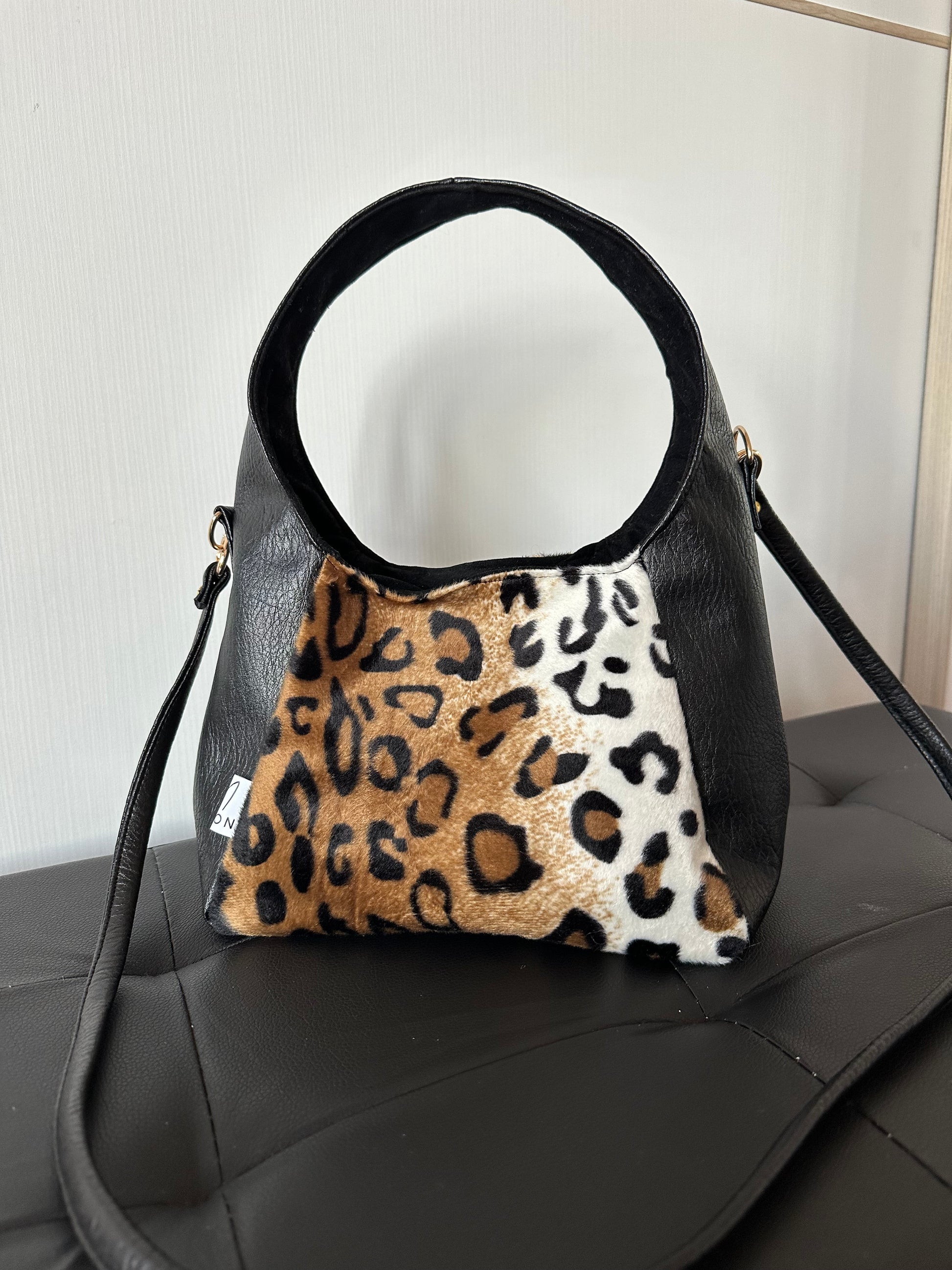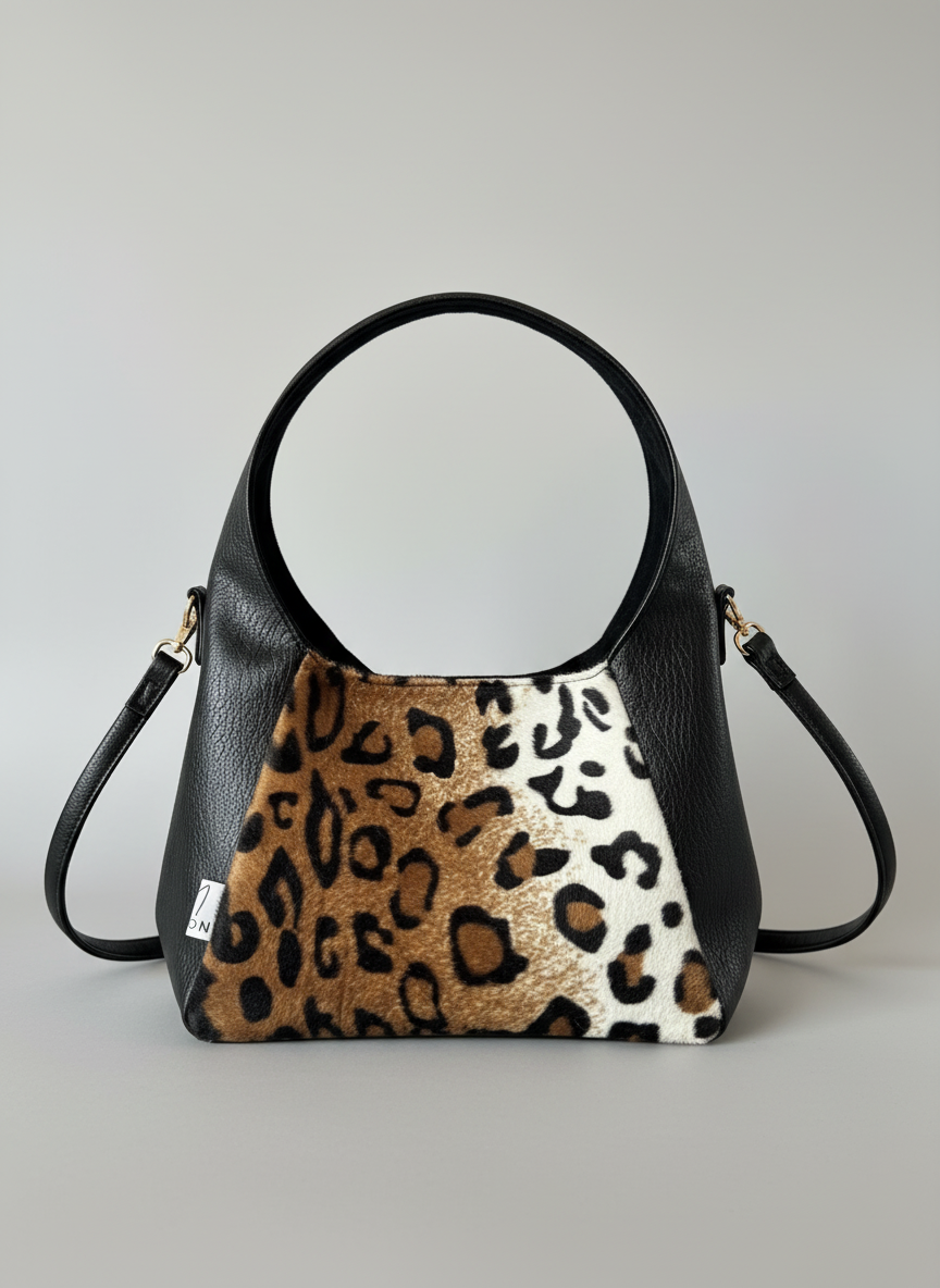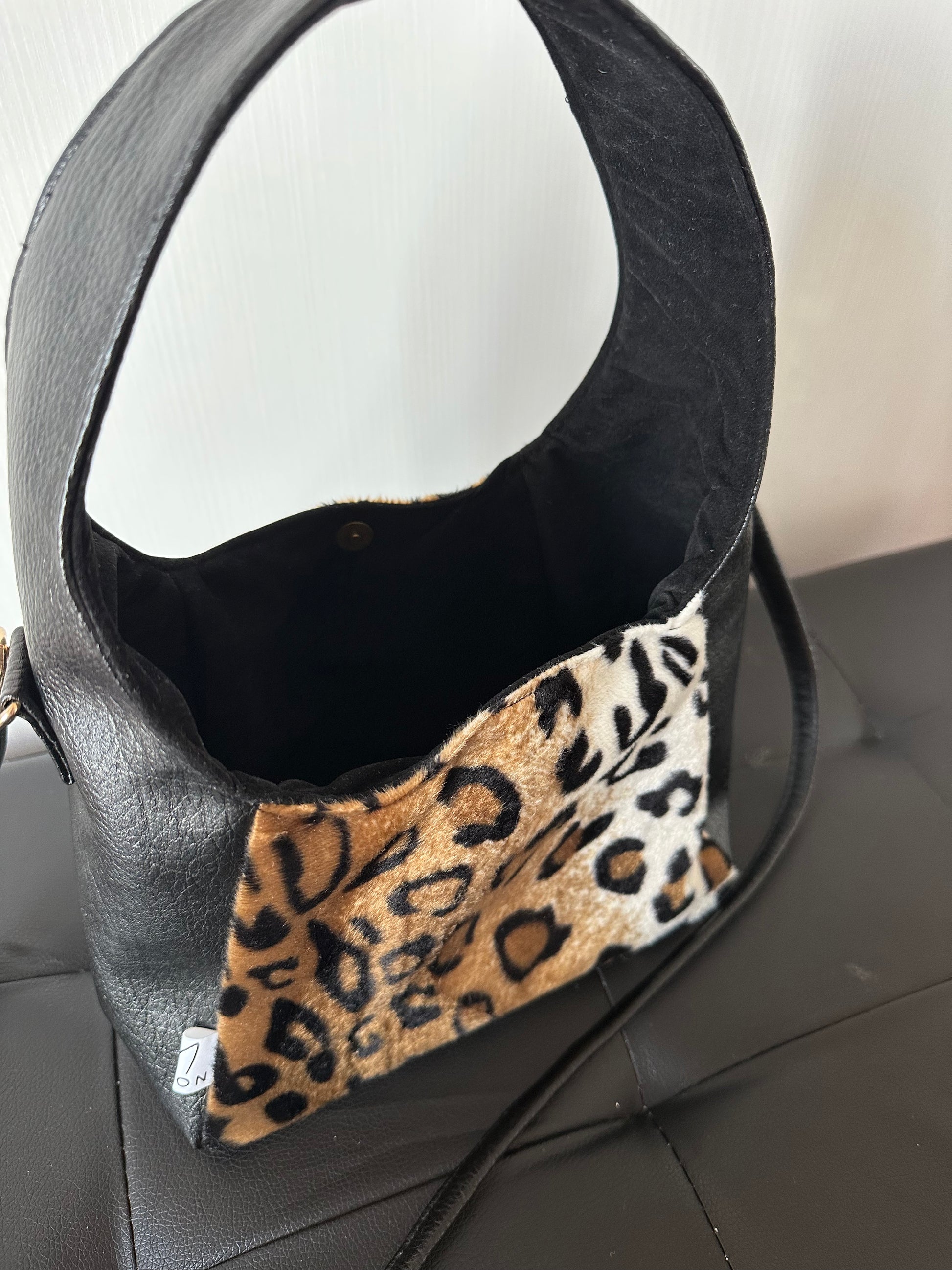 Borsa Everyday in simil cavallino leopardato e similpelle soft touch nera.