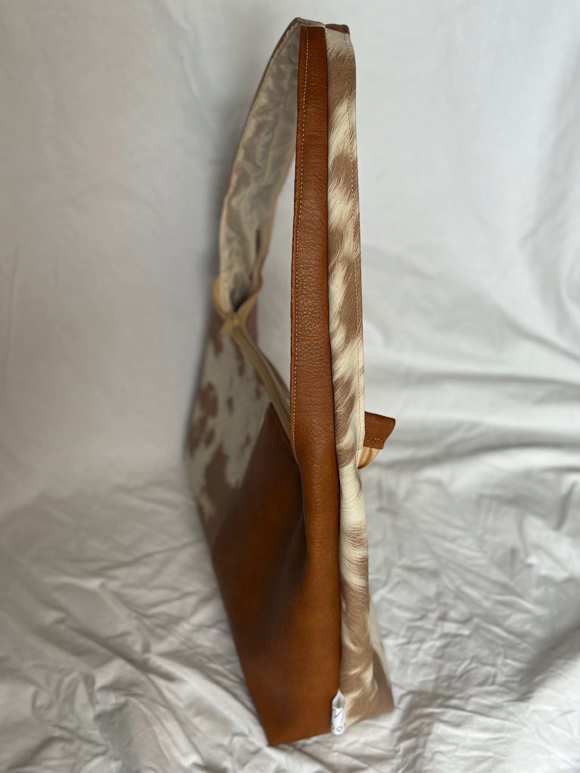 Borsa Hobo in similpelle soft touch a grana grossa marrone cammello e fodera 100% nylon color crema.